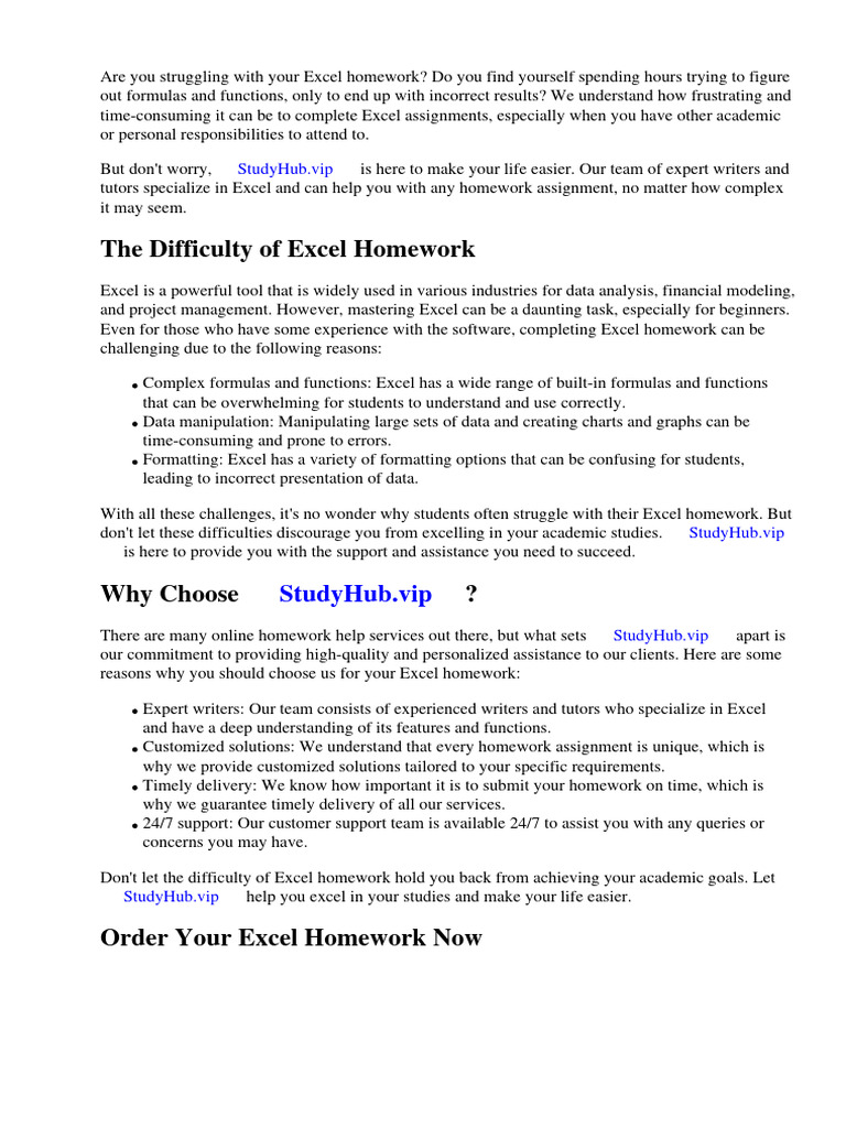Ordering your Excel homework on ⇒ StudyHub.vip ⇔ is quick and easy. Simply visit our website