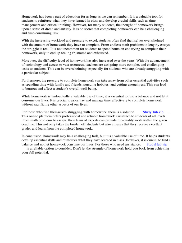 In conclusion, homework may be a challenging task, but it is a valuable use of time. It helps students