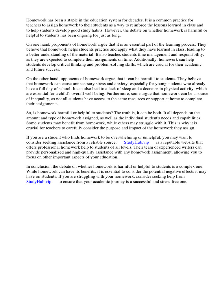 to help students develop good study habits. However, the debate on whether homework is harmful or