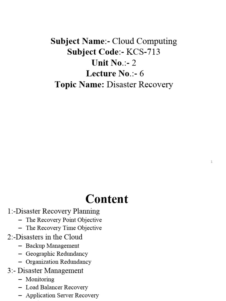 1:-Disaster Recovery Planning