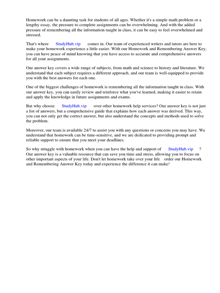 make your homework experience a little easier. With our Homework and Remembering Answer Key,