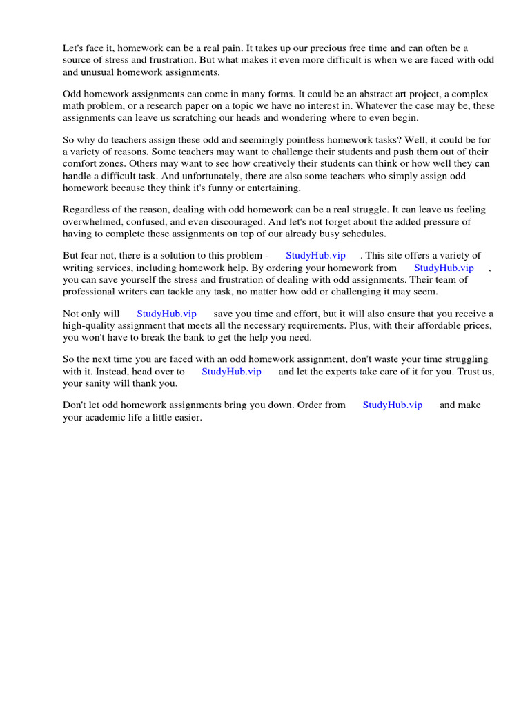 Don't let odd homework assignments bring you down. Order from ⇒ StudyHub.vip ⇔ and make