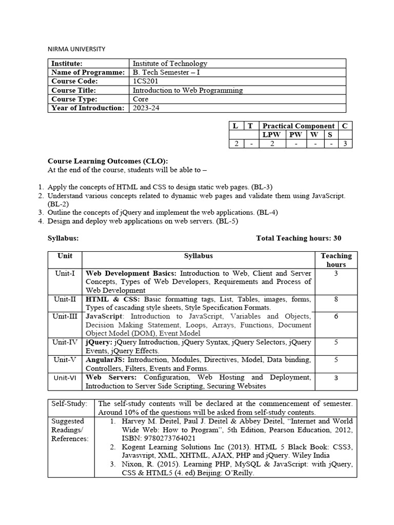 1. Apply the concepts of HTML and CSS to design static web pages. (BL-3)