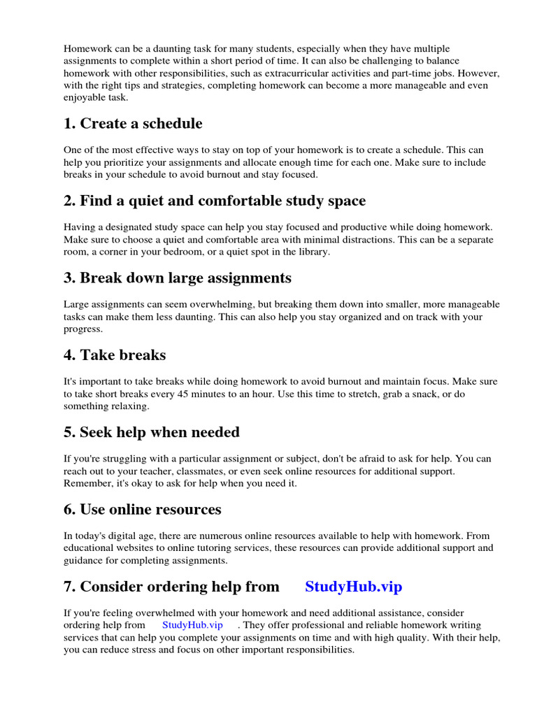 In conclusion, completing homework can be a challenging task, but with the right tips and strategies,