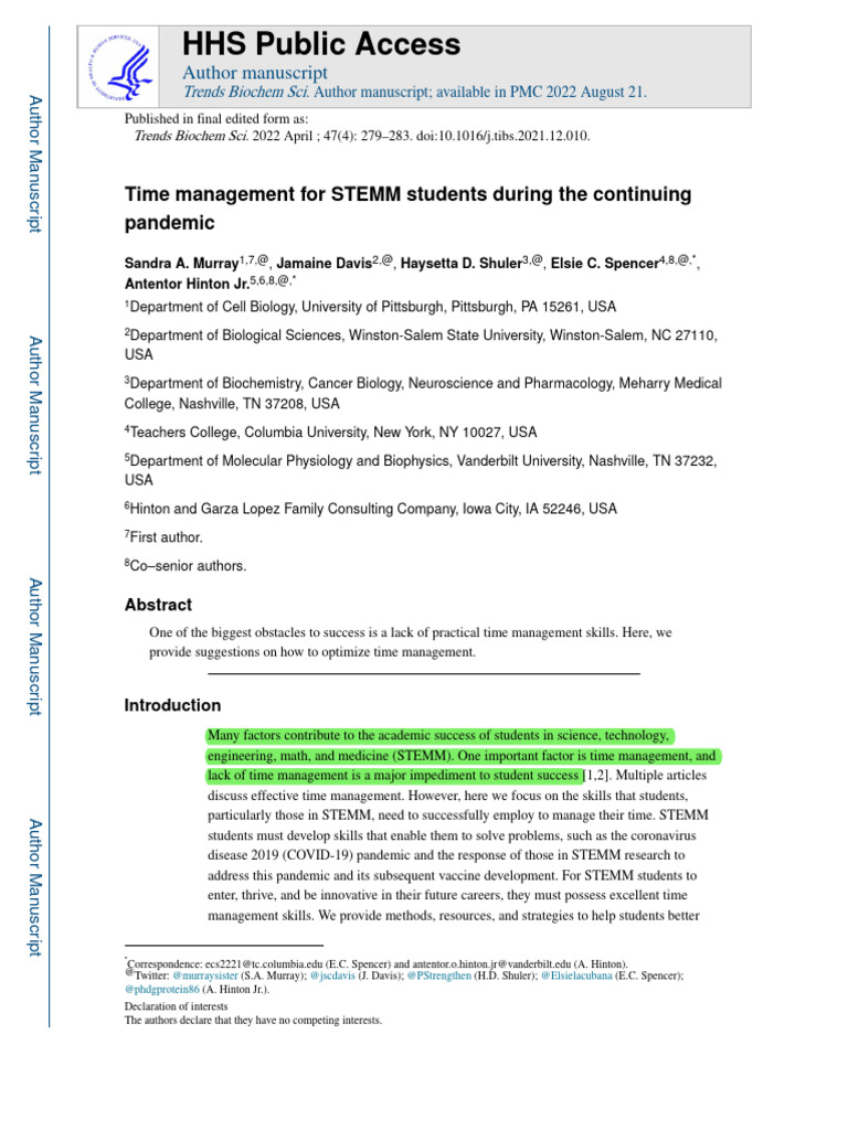 lack of time management is a major impediment to student success [1,2]. Multiple articles