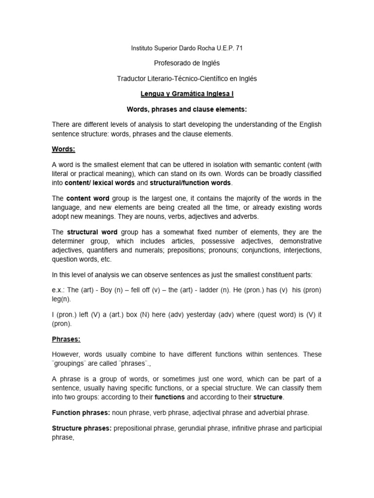 Structure phrases: prepositional phrase, gerundial phrase, infinitive phrase and participial