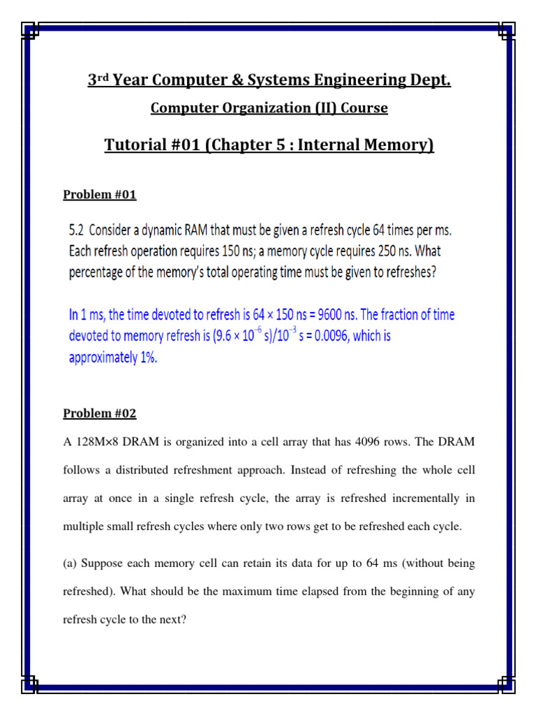 Tutorial #01 (Chapter 5 : Internal Memory)
