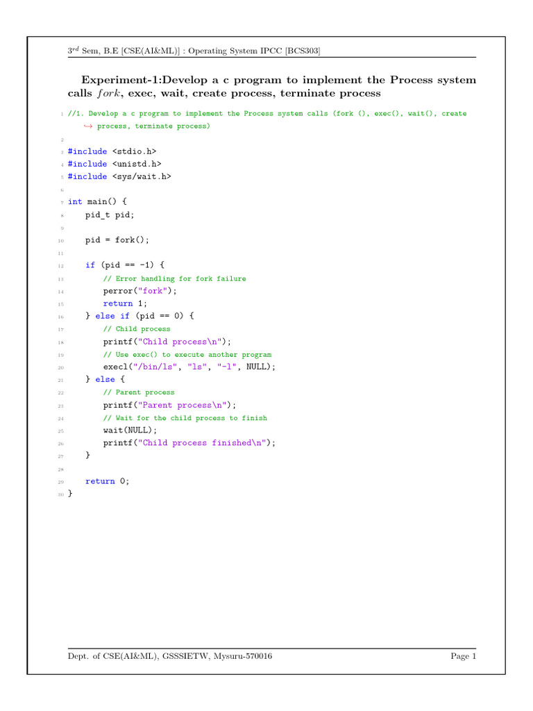 1 //1. Develop a c program to implement the Process system calls (fork (), exec(), wait(), create