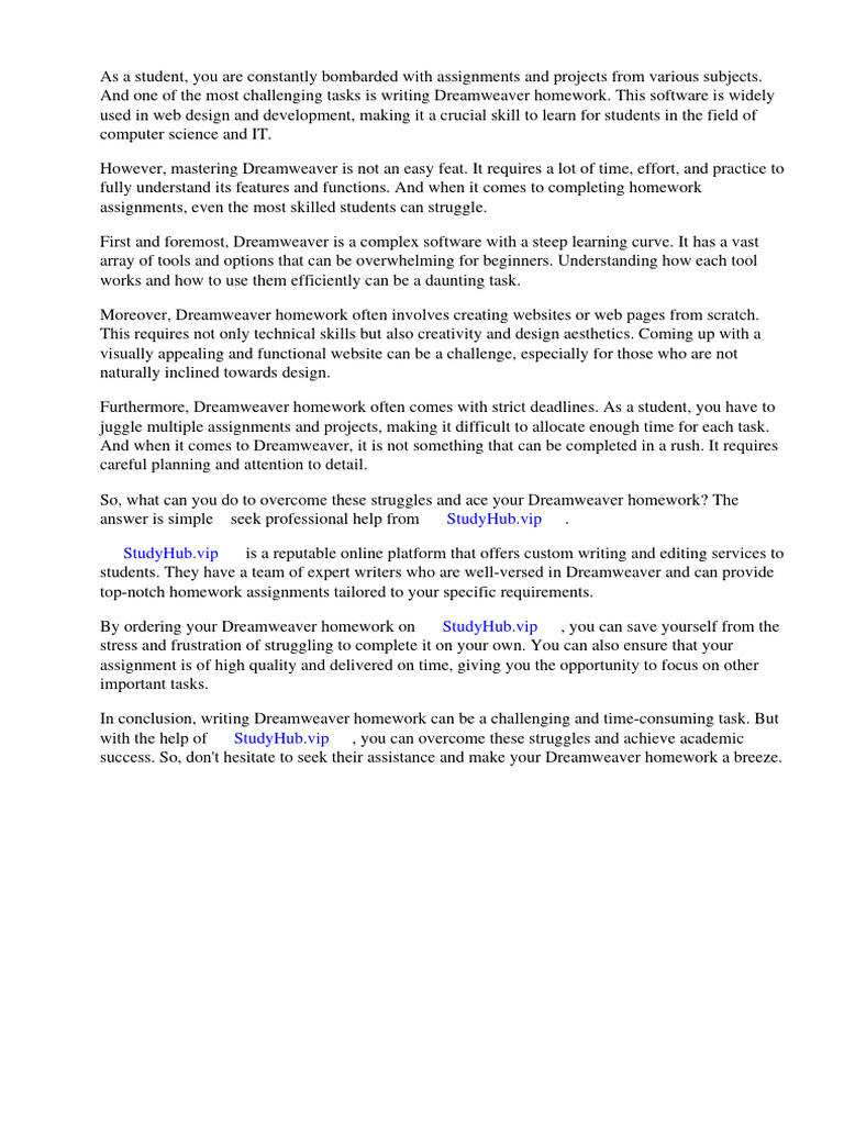 success. So, don't hesitate to seek their assistance and make your Dreamweaver homework a breeze.