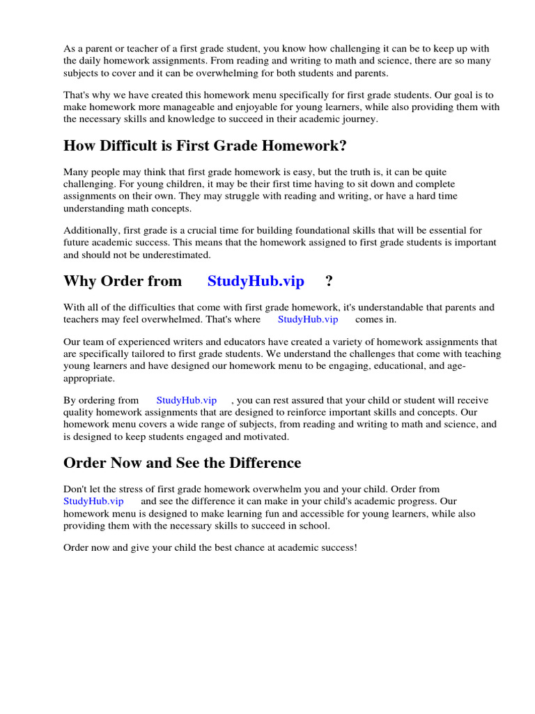 That's why we have created this homework menu specifically for first grade students. Our goal is to