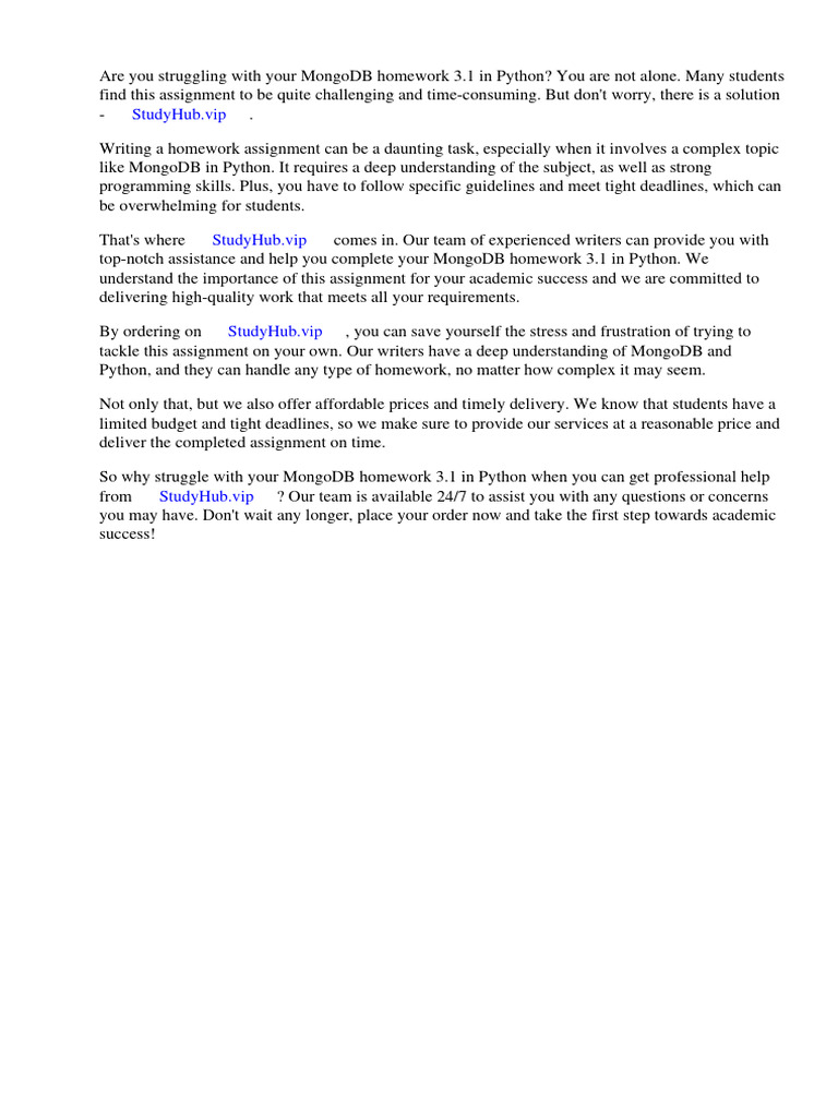top-notch assistance and help you complete your MongoDB homework 3.1 in Python. We