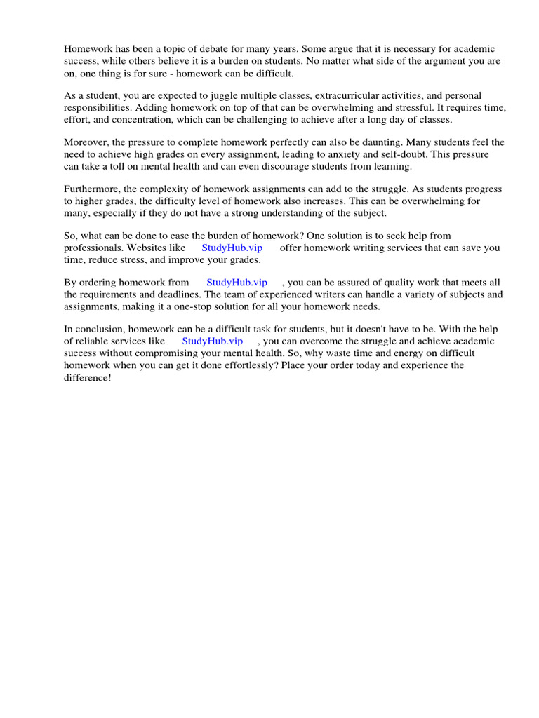 In conclusion, homework can be a difficult task for students, but it doesn't have to be. With the help