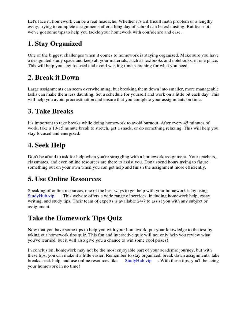 taking our homework tips quiz. This fun and interactive quiz will not only help you review what