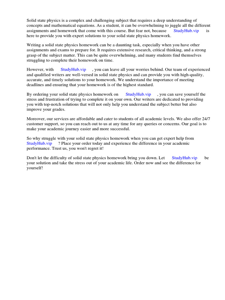 By ordering your solid state physics homework on ⇒ StudyHub.vip ⇔, you can save yourself the