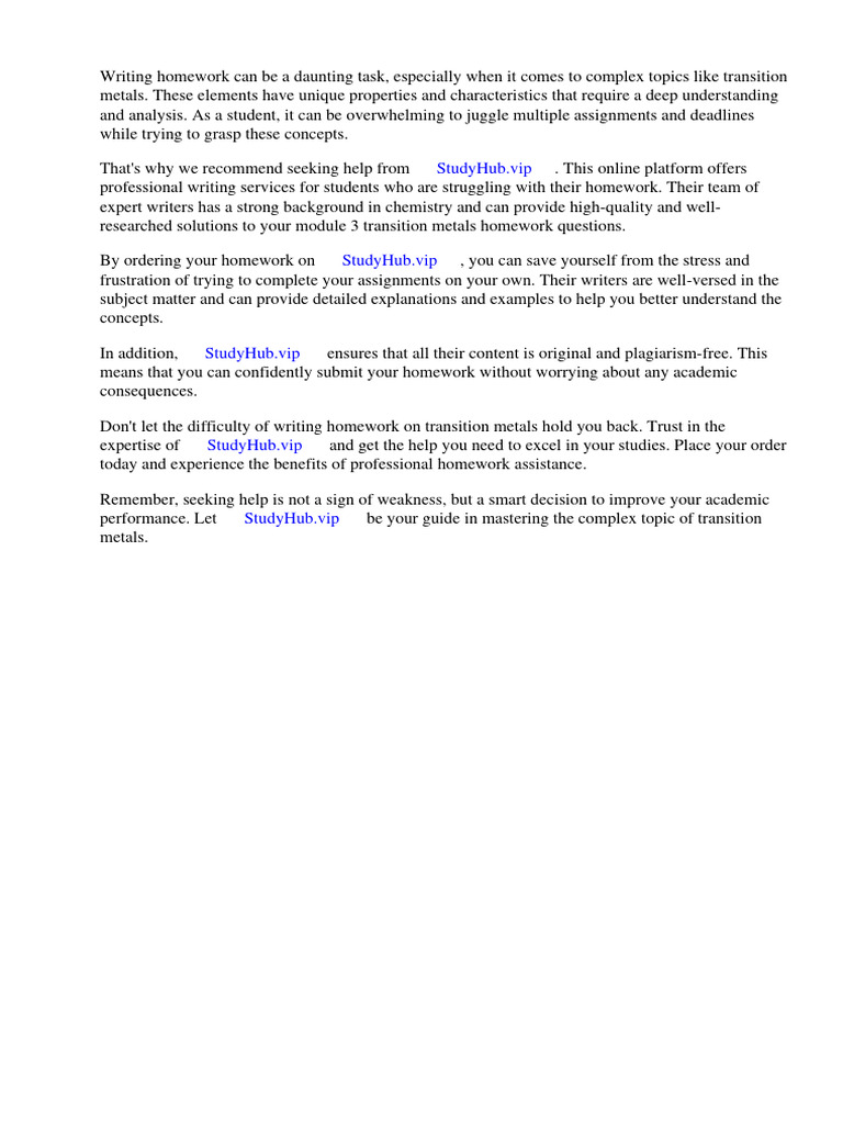 Don't let the difficulty of writing homework on transition metals hold you back. Trust in the