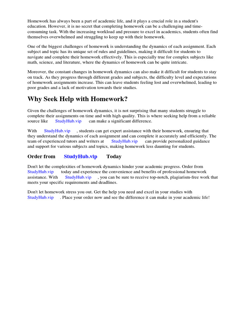 Don't let the complexities of homework dynamics hinder your academic progress. Order from ⇒