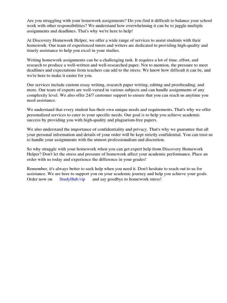 At Discovery Homework Helper, we offer a wide range of services to assist students with their