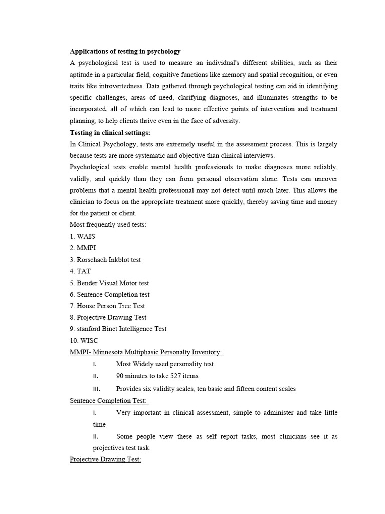 In Clinical Psychology, tests are extremely useful in the assessment process. This is largely