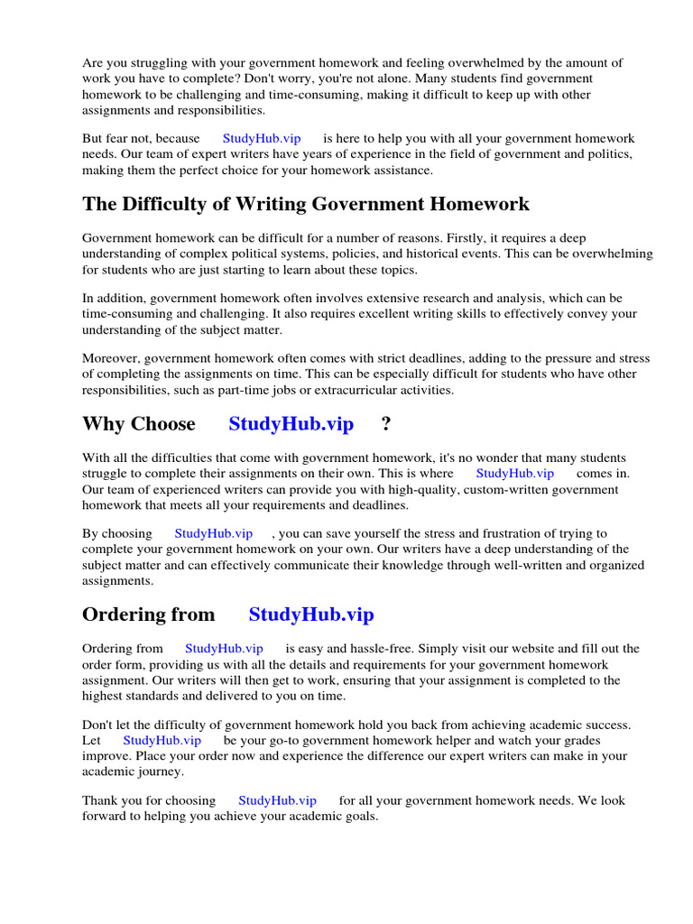 Don't let the difficulty of government homework hold you back from achieving academic success.