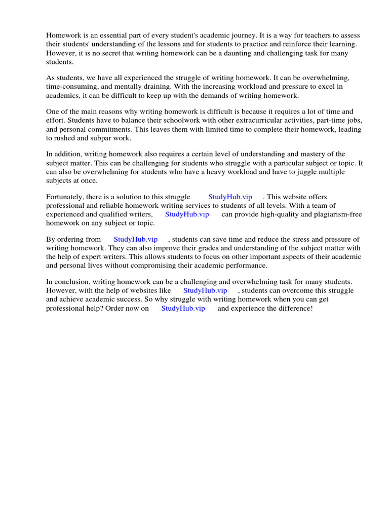 However, it is no secret that writing homework can be a daunting and challenging task for many
