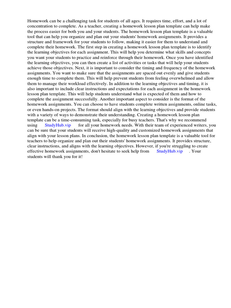 the process easier for both you and your students. The homework lesson plan template is a valuable