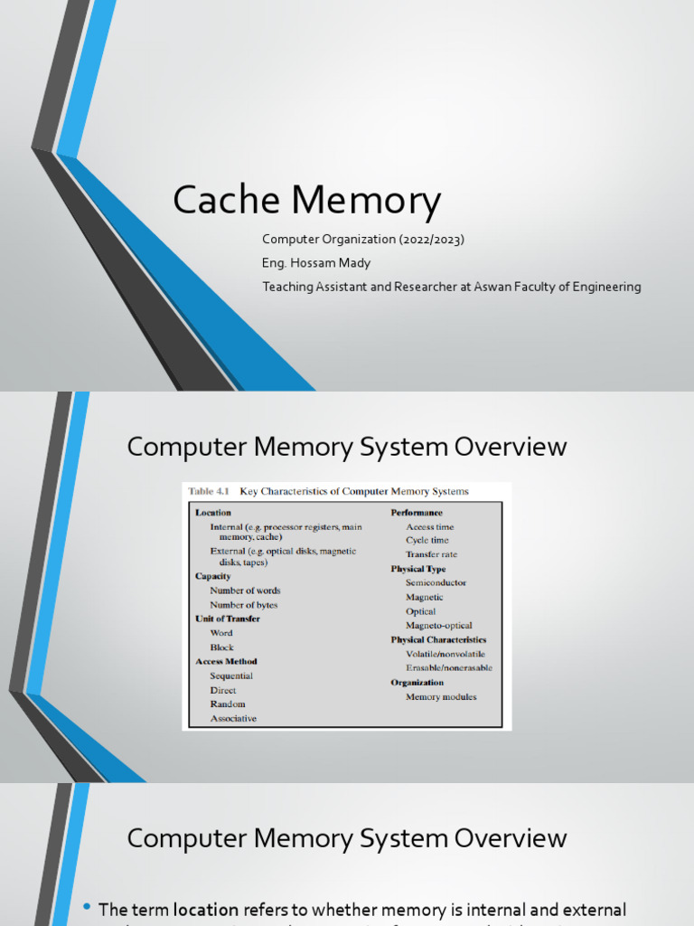 • Memory cycle time: This concept is primarily applied to random-access memory
