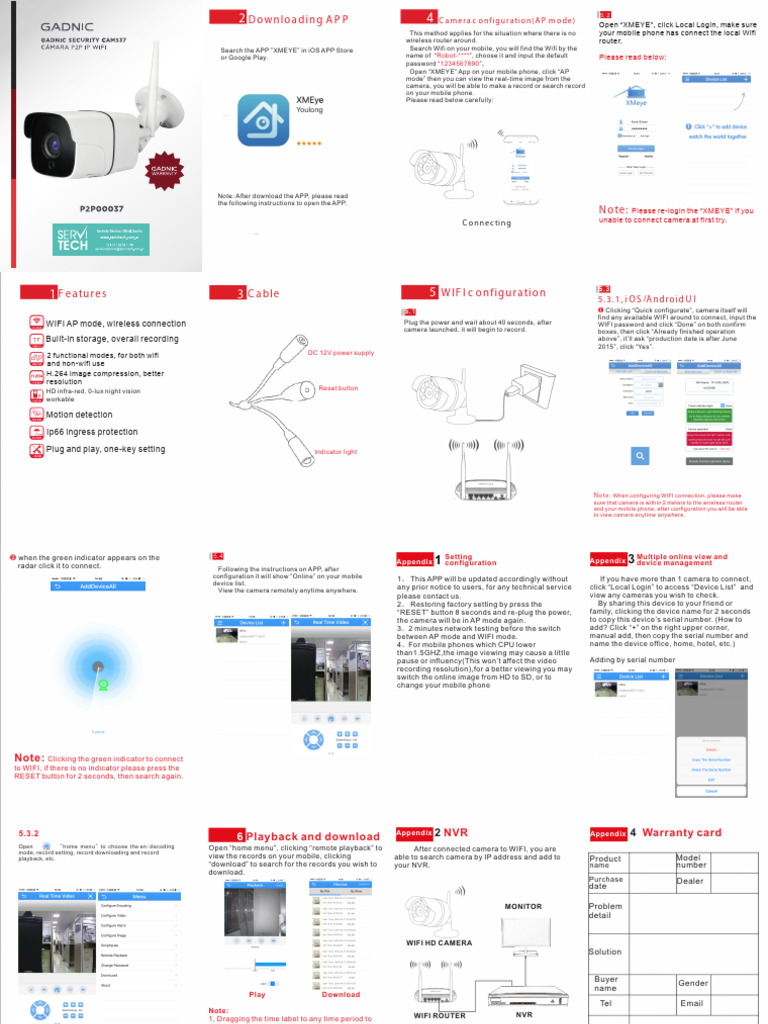 6 Playback and download Appendix 2 NVR Appendix 4 Warranty card