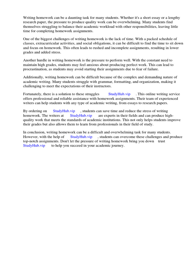 Additionally, writing homework can be difficult because of the complex and demanding nature of