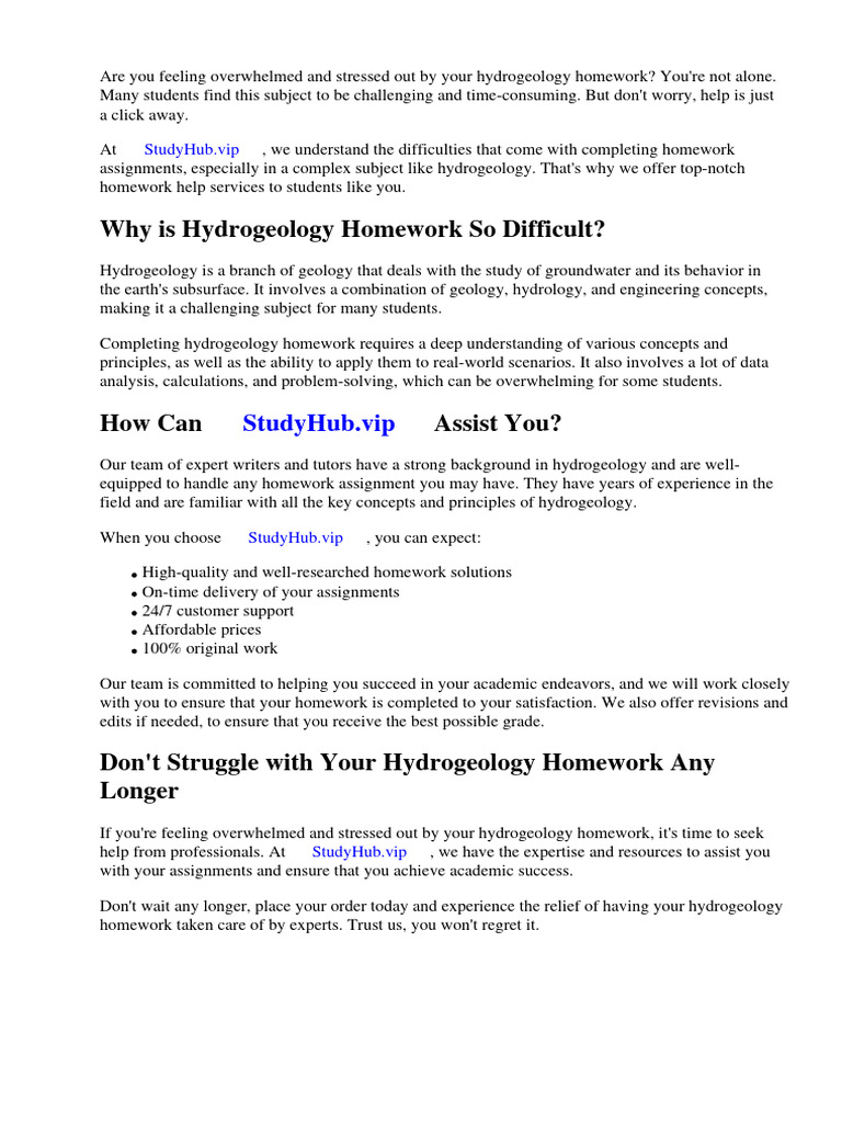 If you're feeling overwhelmed and stressed out by your hydrogeology homework, it's time to seek
