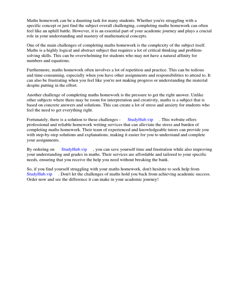specific concept or just find the subject overall challenging, completing maths homework can often