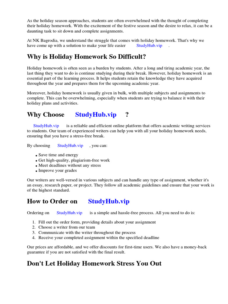 to students. Our team of experienced writers can help you with all your holiday homework needs,