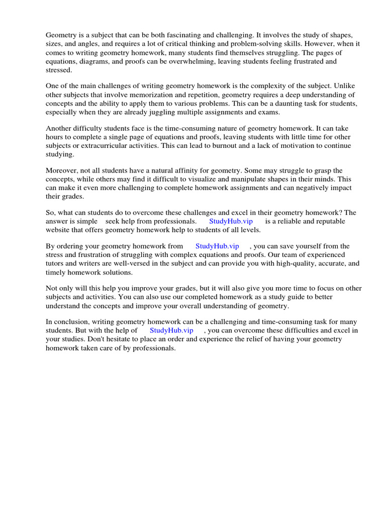 In conclusion, writing geometry homework can be a challenging and time-consuming task for many