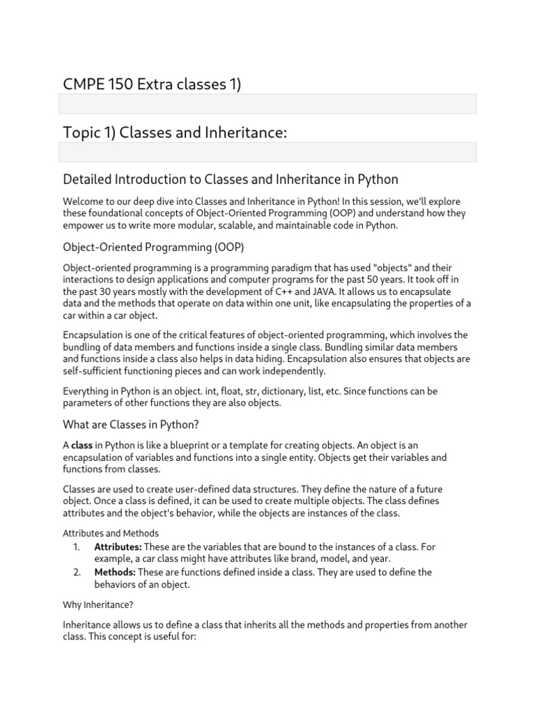 Welcome to our deep dive into Classes and Inheritance in Python! In this session, we'll explore