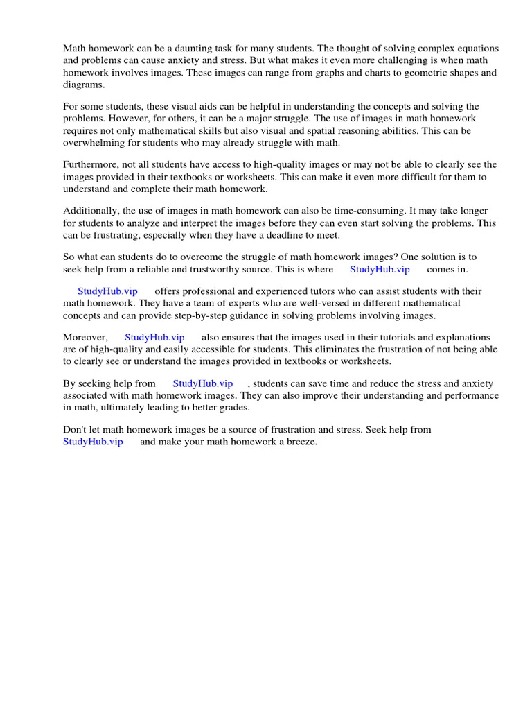 problems. However, for others, it can be a major struggle. The use of images in math homework