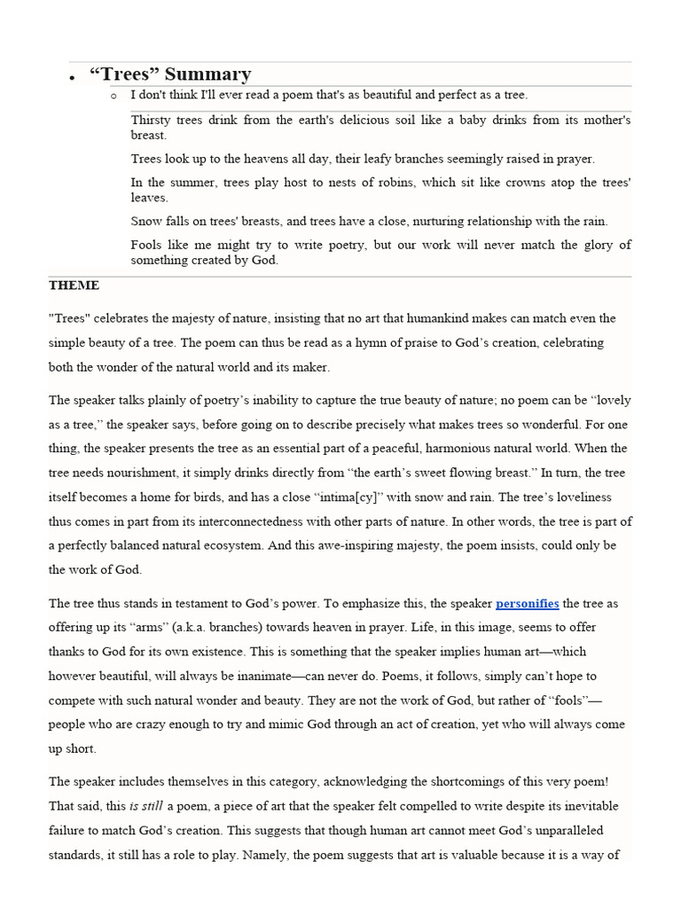 simple beauty of a tree. The poem can thus be read as a hymn of praise to God’s creation, celebrating