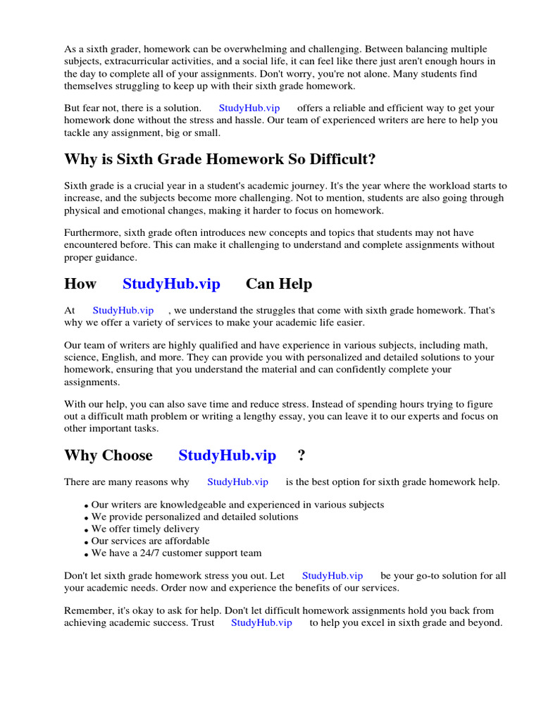Don't let sixth grade homework stress you out. Let ⇒ StudyHub.vip ⇔ be your go-to solution for all