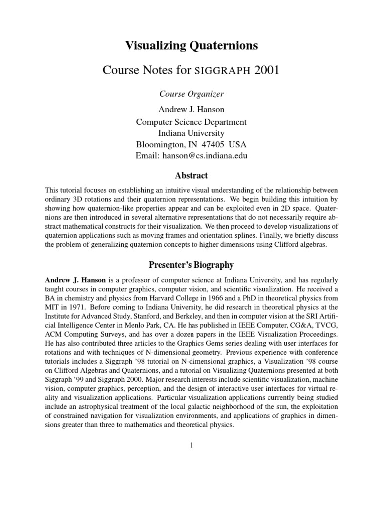Practitioners of computer graphics and animation frequently represent 3D rotations using the