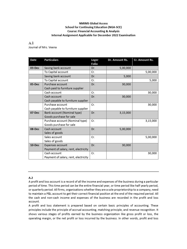 07-Dec Bank account (Nominal type) Dr. 3,15,000