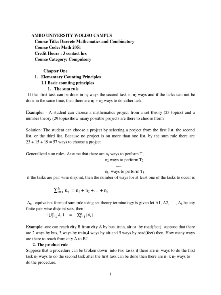 Example: - A student can choose a mathematics project from a set theory (23 topics) and a