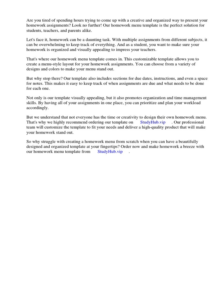 our homework menu template from ⇒ StudyHub.vip ⇔.