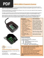 All-in-one Fingerprint module with USB connector. Easy to integrate with other devices Uses Fujitsu MBF200 Fingerprint Sensor Low Power 18 milliamps: Operating 500 microamps: Standby USB 1.1 compatible (to 13 FPS) 256 x 300 Pixel Array (50 m pixel pitch) 500 DPI resolution 8-bit grayscale (256 gray levels) On board A/D Converter Programmable gain control for image optimization 12.8mm x 15mm image area Lead-Free and ROHS compliant parts available Windows XP USB signed drivers