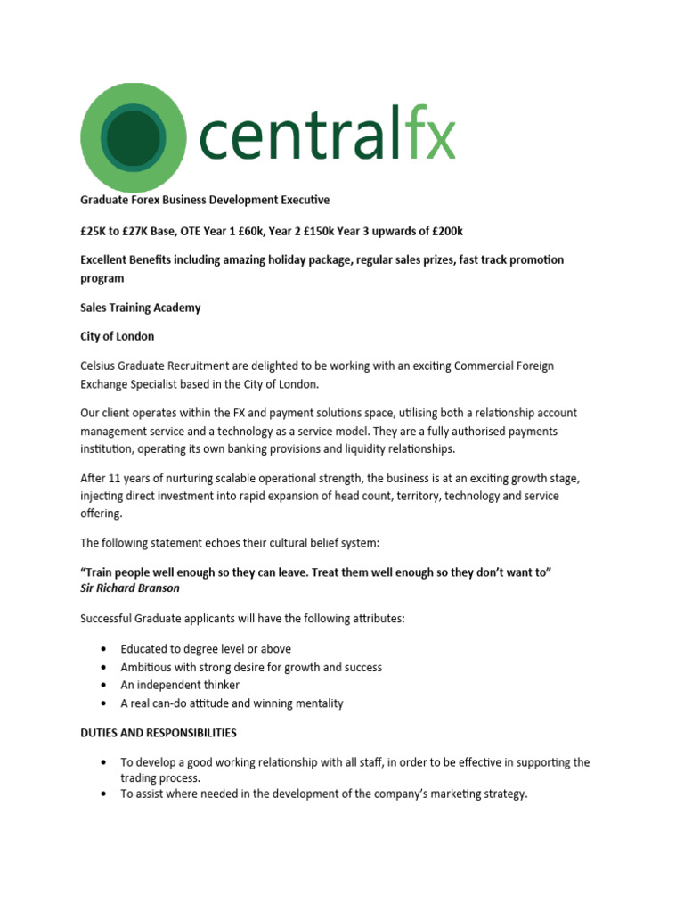 Celsius Graduate Recruitment are delighted to be working with an exciting Commercial Foreign