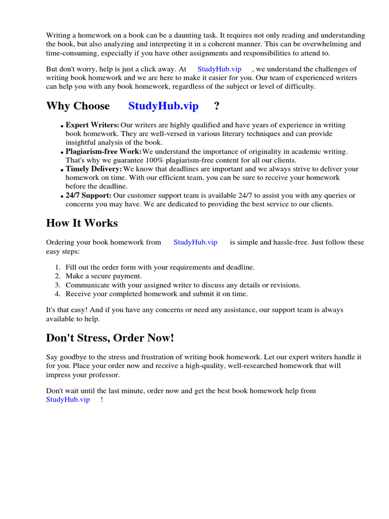 Ordering your book homework from ⇒ StudyHub.vip ⇔ is simple and hassle-free. Just follow these