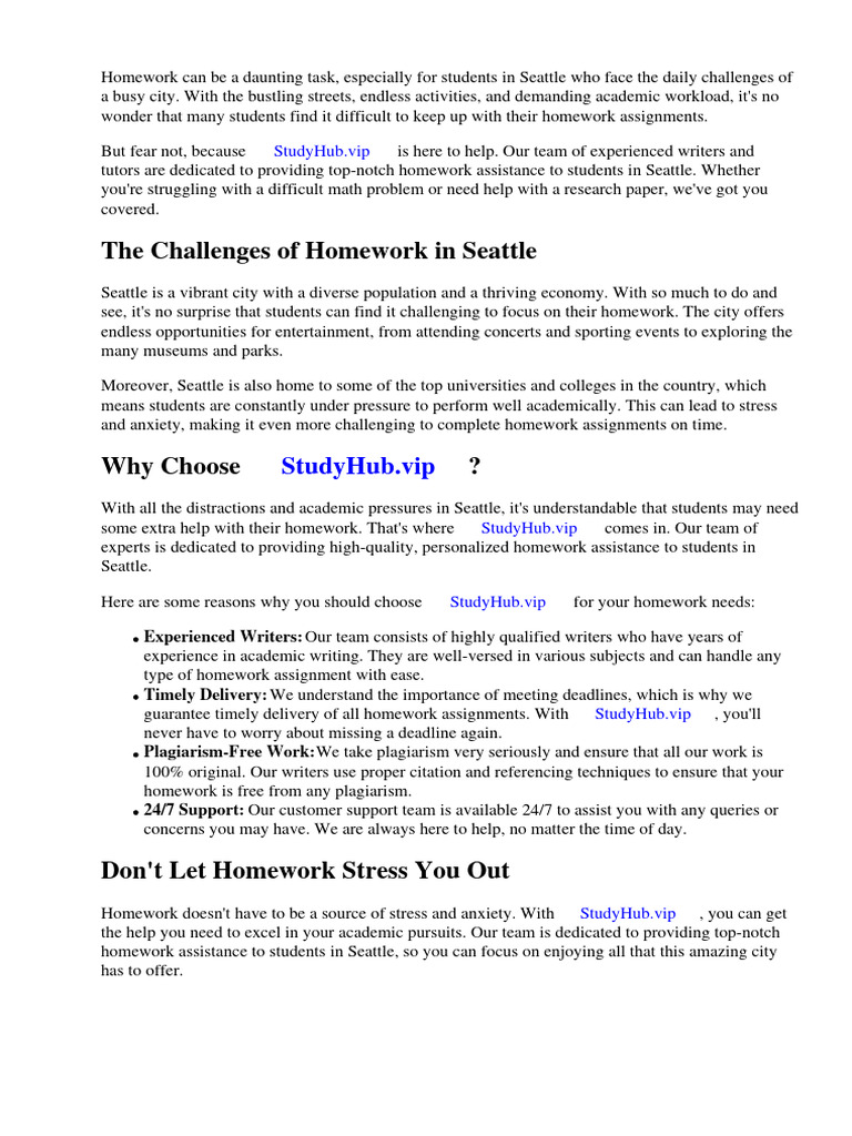 solution to the challenges of homework in Seattle. Order now and experience the difference our