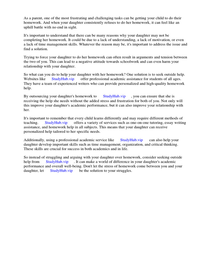 By outsourcing your daughter's homework to ⇒ StudyHub.vip ⇔, you can ensure that she is