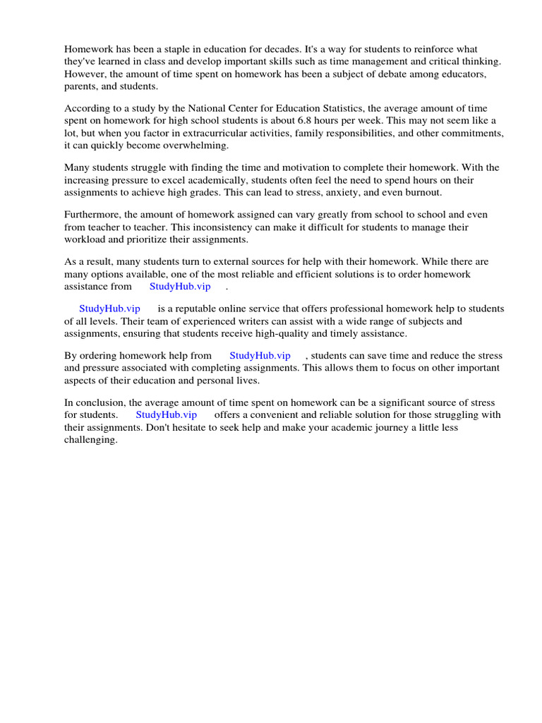 In conclusion, the average amount of time spent on homework can be a significant source of stress