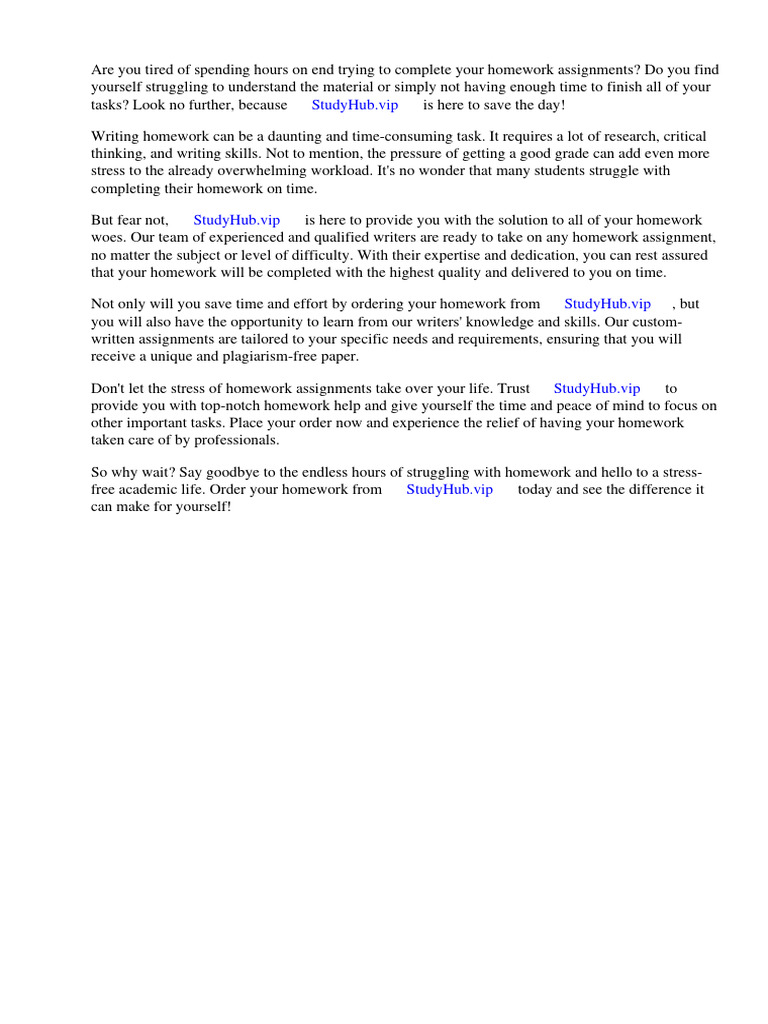 free academic life. Order your homework from ⇒ StudyHub.vip ⇔ today and see the difference it