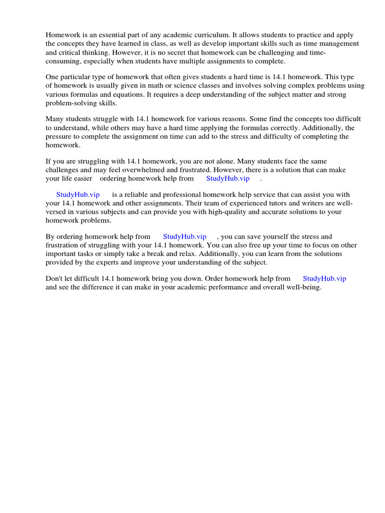 Don't let difficult 14.1 homework bring you down. Order homework help from ⇒ StudyHub.vip ⇔
