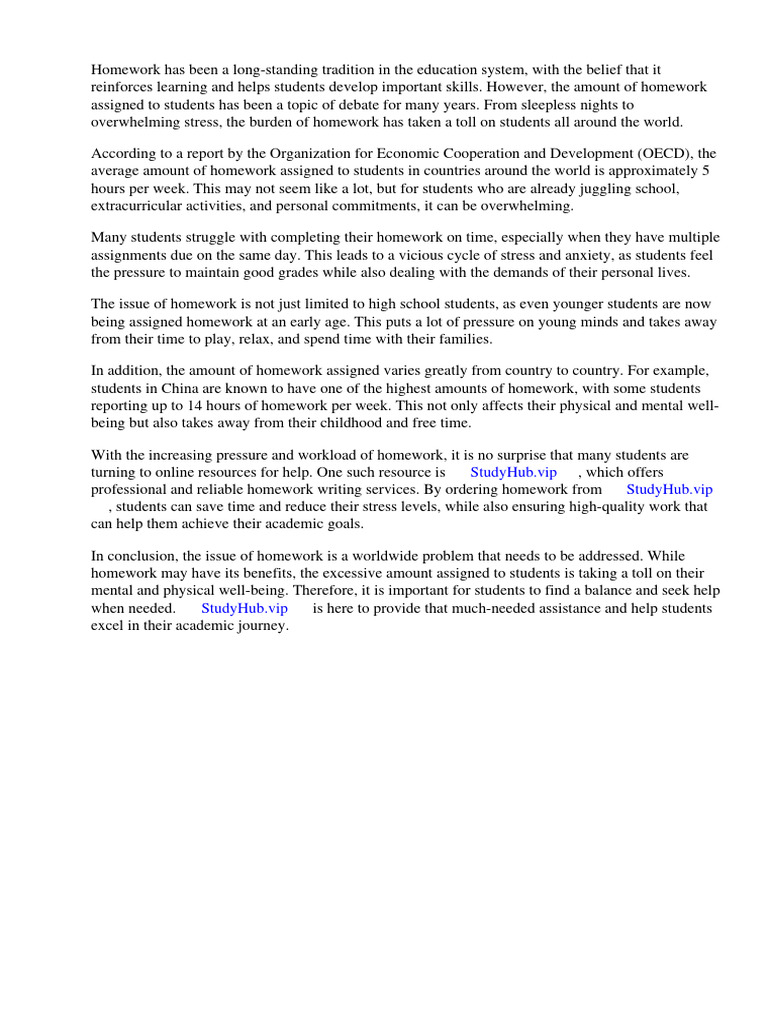 In conclusion, the issue of homework is a worldwide problem that needs to be addressed. While