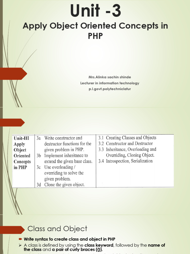 Declare a class named Student consisting of two properties ($name and $class) and two